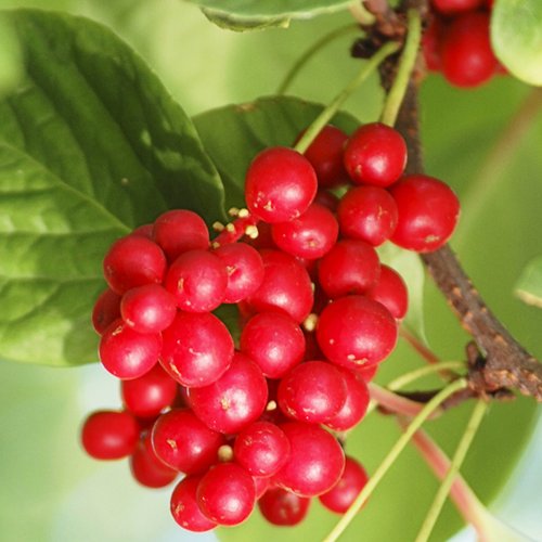 Одним из главных достоинств лимонника Дедовского является его способность к формированию плодов компактной формы. Плоды окрашены в яркий карминово-красный цвет, что моментально привлекает внимание. Эта декоративная характеристика также имеет и практическую ценность: зрелые ягоды легко выделяются на фоне зелёной листвы, что облегчает их сбор. Мякоть ягод ярко-красная, сочная и насыщенная, с тонкой кожицей. Это делает кисти особенно подходящими для изготовления свежих соков и различных кулинарных изделий.