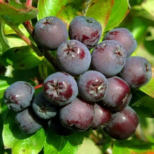 Красивая ягода на кустах, черно-пурпурного цвета. По размеру большая, мякоть сладкая, сочная. Урожай собираем примерно в первых числах декабря, в конце ноября. В основном делаем заготовки. Из этой рябины получается ароматный ликер, терпкий и насыщенный. Джем тоже получается вкусный. Цветет куст красиво бело-розовыми цветками, крупными соцветиями, аромат дают вкусный. Он сам по себе даже привлекательный, если сажать как декоративное растение. У нас на участке 2 растения. Смотрятся эффектно. Довольны покупкой, спасибо!