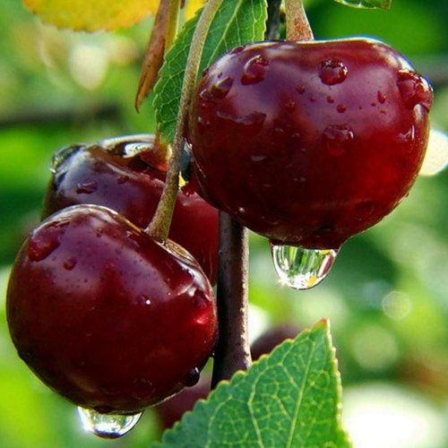 - Округлой формы, тёмно-красного цвета. Мякоть умеренно плотная и сочная, как и сок, тёмно-красного цвета. Косточка небольшая, легко извлекается;
